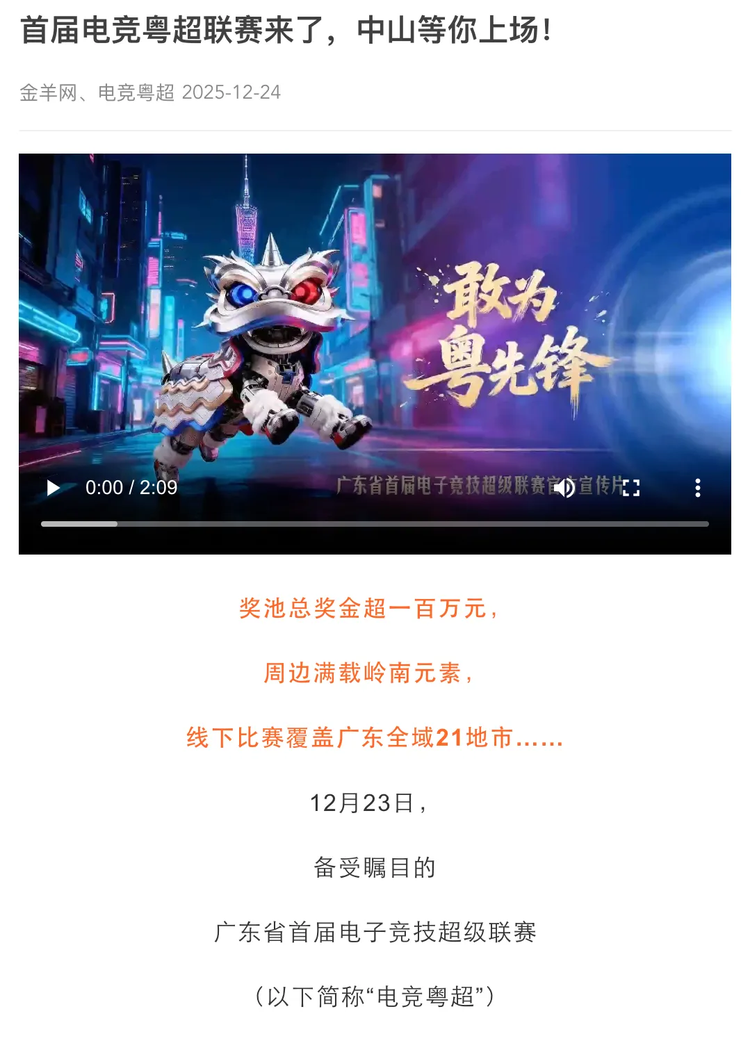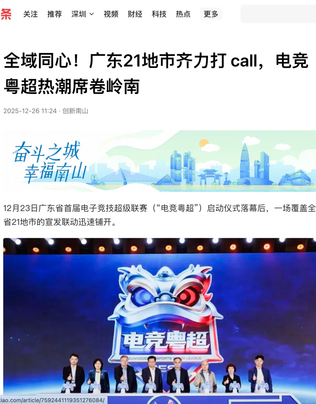 每一篇宣传稿都是对电竞粤超的认可,每一次转发都是对全民电竞的助力,感谢各地市官媒用专业与热情,让 “为城市而战” 的口号响彻广东!