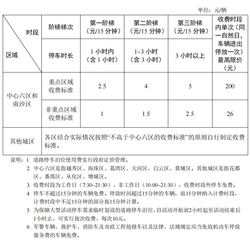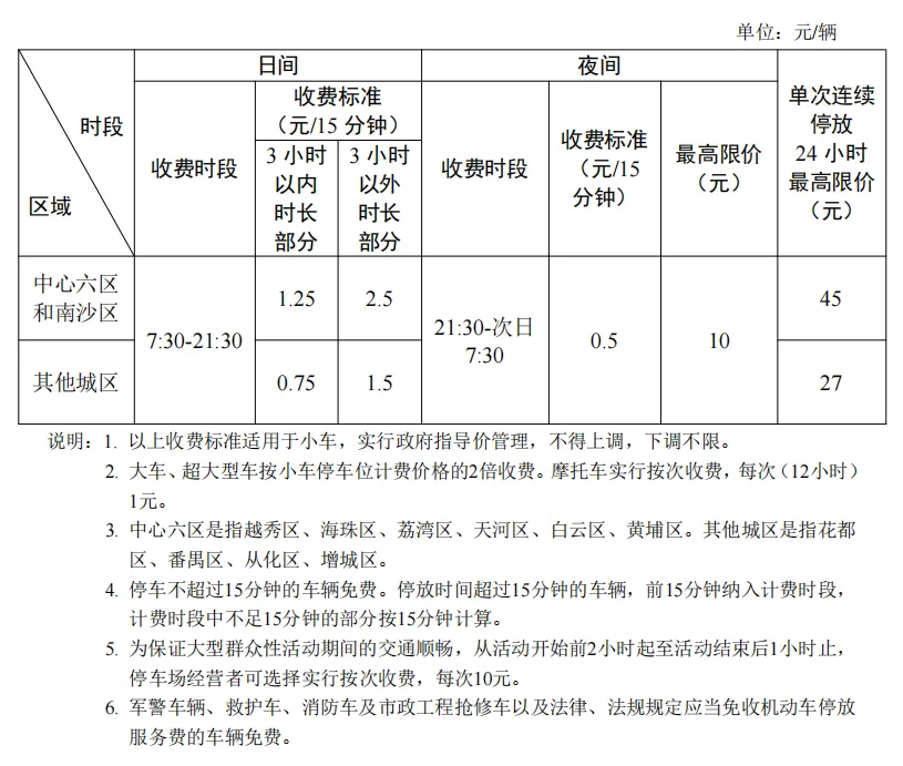 👉中心六区(指越秀区、海珠区、荔湾区、天河区、白云区、黄埔区,下同)和南沙区由市发展改革部门制定收费标准;
