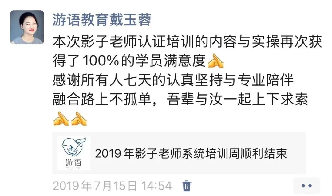 持有 游语影子老师初阶证书