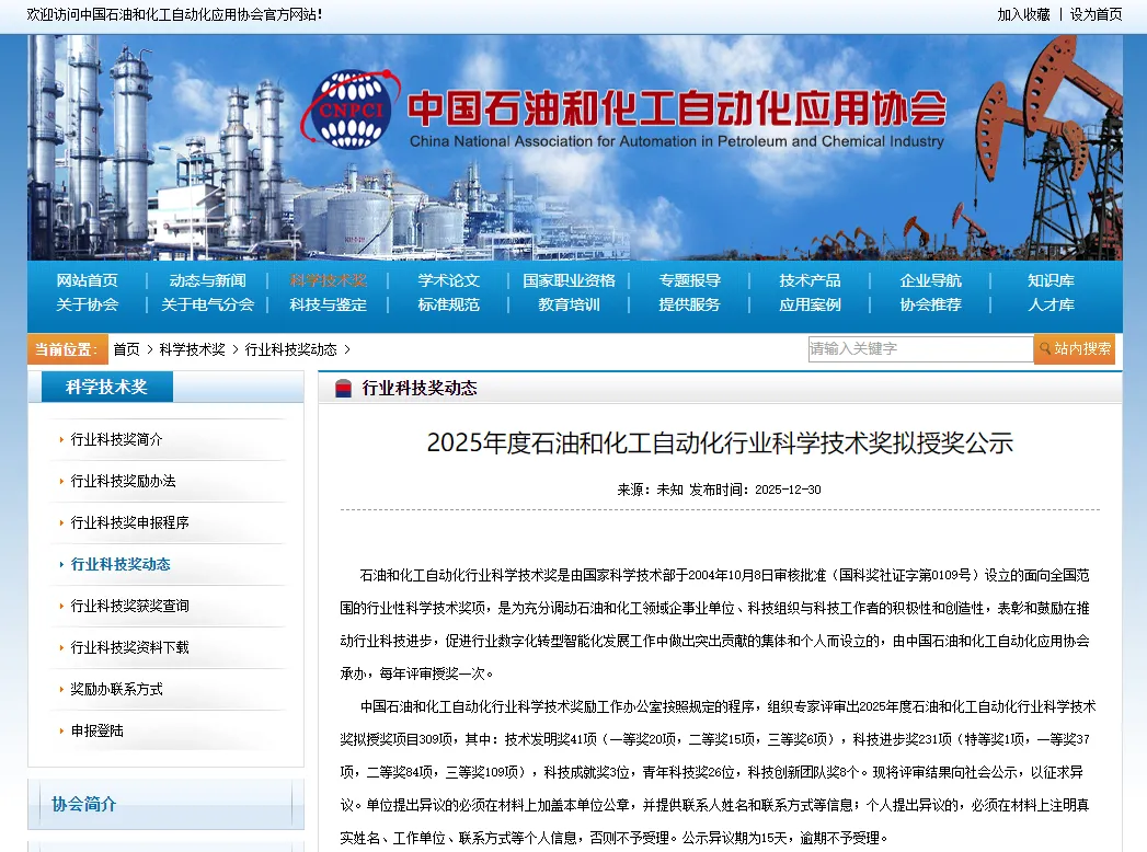 2025年度石油和化工自动化行业科学技术奖拟授奖公示
