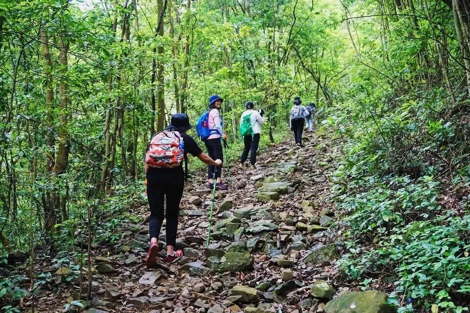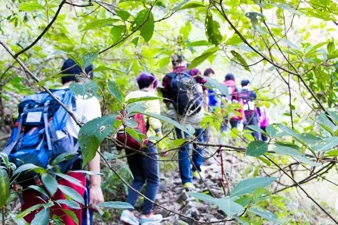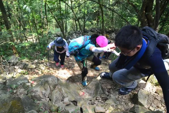 10:15到达碧水峡第一峰高山漂流点后集中整理装备,10分钟补给和热身后,开始登山;