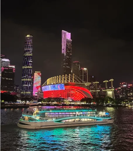 登上夜游珠江游轮,观赏迷人的夜景,感受城市的繁华与宁静。儿童还能享半价,贴心度拉满。登船后瞬间被惊喜到,三层游船搭配超大露天甲板,吹着微凉的江风观景超惬意
