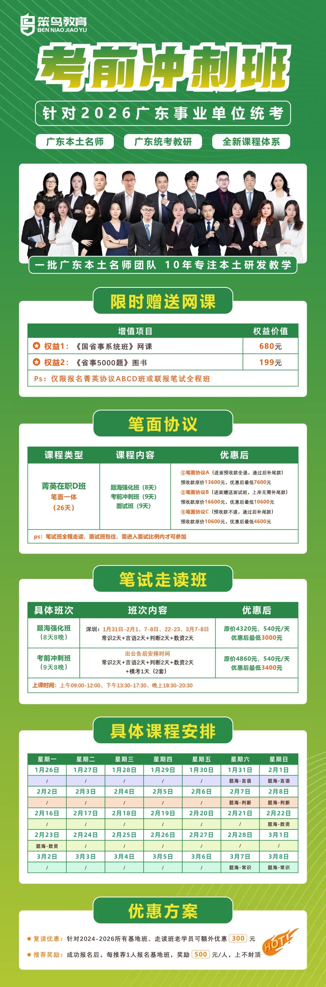 1月31日深圳开课!26广东事业单位统考-走读在职班(题海、冲刺)