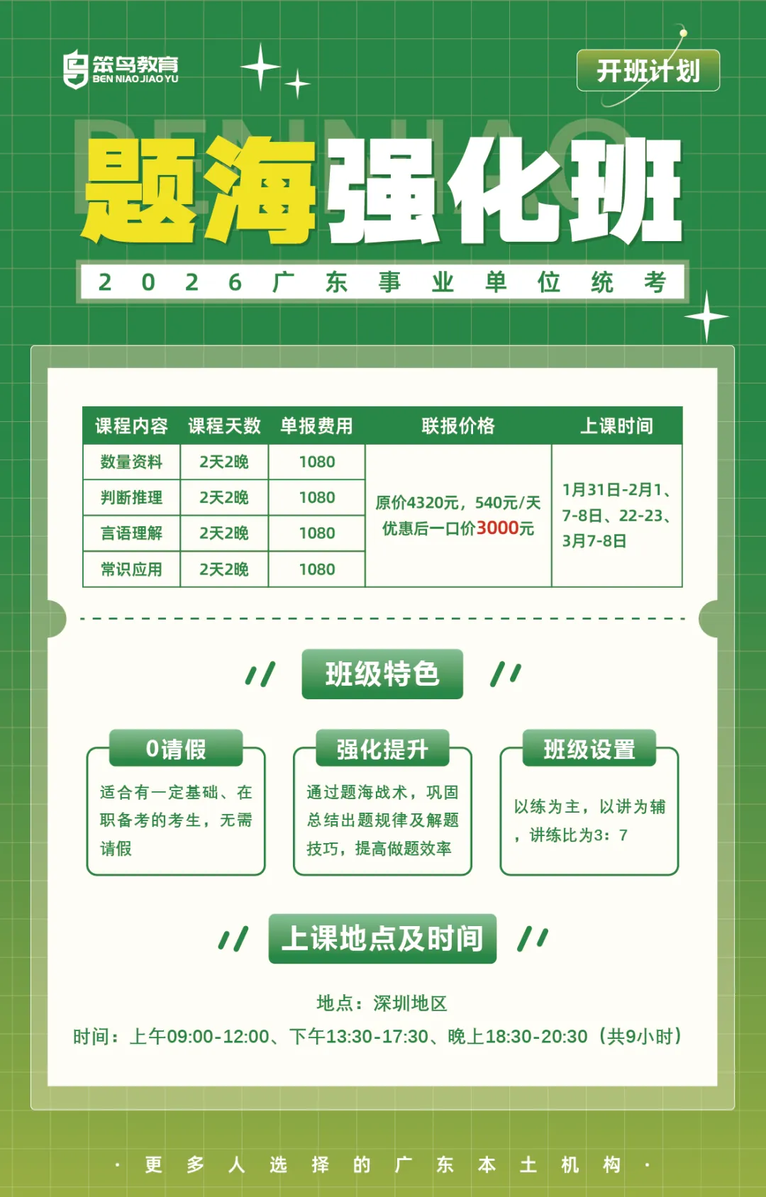 >1月31日深圳开课!26广东事业单位统考-走读在职班(题海、冲刺)