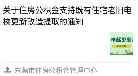 为深入贯彻党中央、国务院关于大规模设备更新和消费品以旧换新的决策部署,落实《广东省住房和城乡建设厅 广东省发展和改革委员会 广东省市场监督管理局关于转发〈住房城乡建设部 国家发展改革委 市场监管总局 关于推进住宅老旧电梯更新改造的实施意见〉的通知》(粤建房〔2025〕65号)的精神,支持既有住宅老旧电梯更新改造,现将我市既有住宅老旧电梯更新改造提取住房公积金政策通知如下: