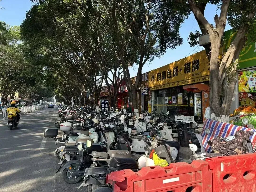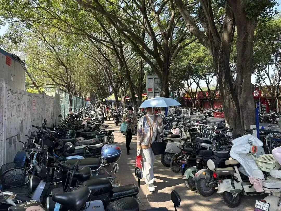 茶叶市场附近,电鸡多到吓死人。免费停车区早就爆满,d车开始入侵人行道、马路边缘,甚至工地门口。行人都被逼出马路。
