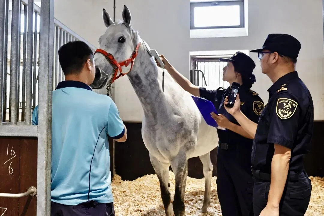 广州海关通过构建“马匹生物特征-烙印ID-芯片ID”数据库,首创性探索开发“马脸智能识别”系统。“系统识别准确率最高可达99%,节约人力成本约30%,实现马匹行进间‘无感查验’,无需停留秒速通关。”从化海关驻马场办事处主任张震亚介绍。自2018年粤港跨境马匹常态化运输以来,超4万匹次赛马已籍此安全往返。