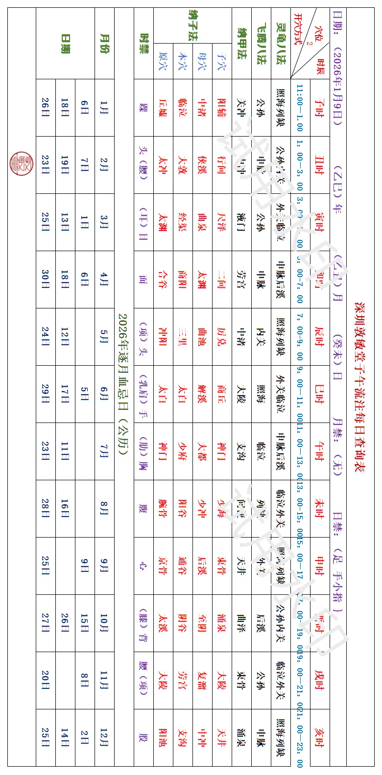 >深圳敦敏堂《子午流注:今日开穴》 2026 1月9日