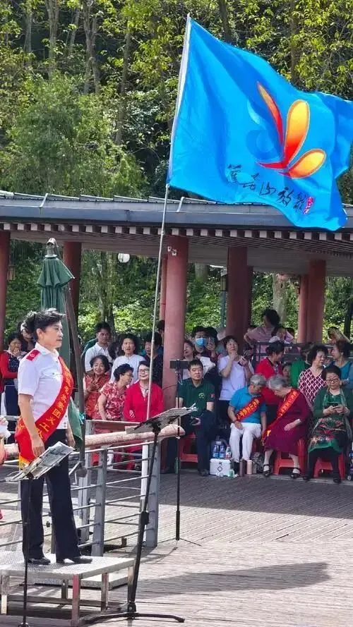凉亭里唱歌跳舞的很多,大都是些退休中老年人,被称为红歌会。