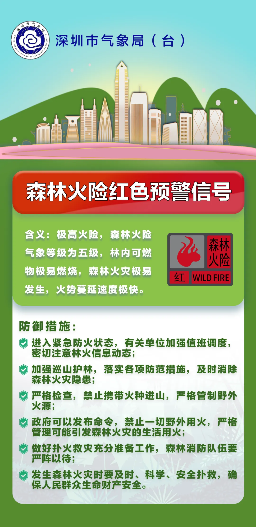 森林火险红色预警信号生效中
