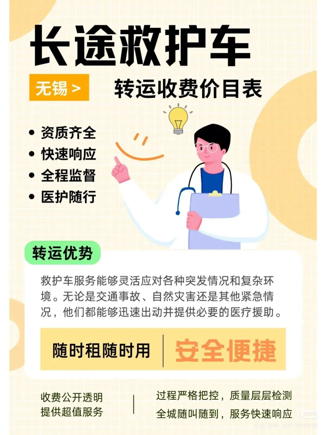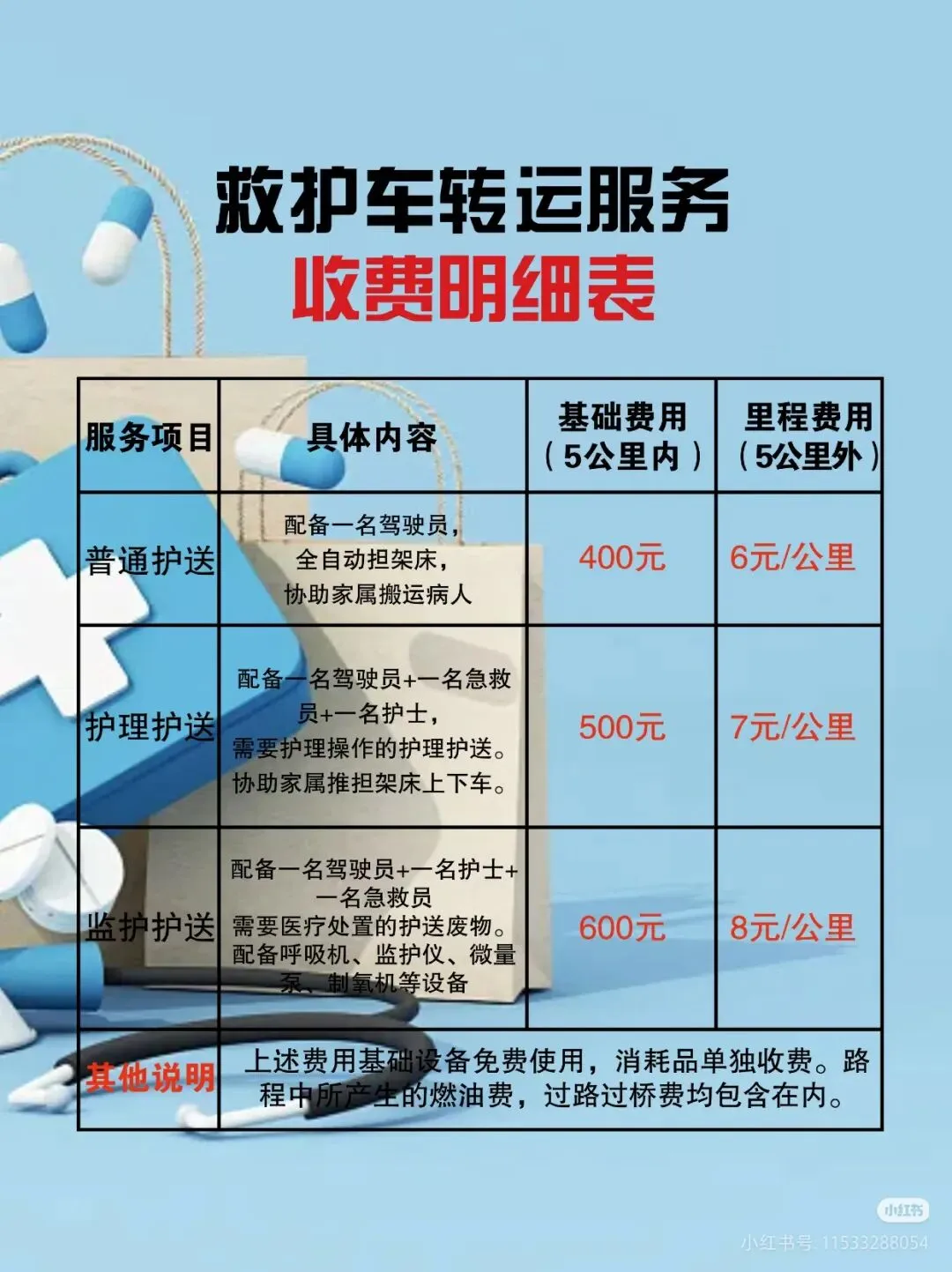 基础费300元起,里程费6-10元/公里,医护服务费、特殊设备使用费提前公示,无隐形消费!