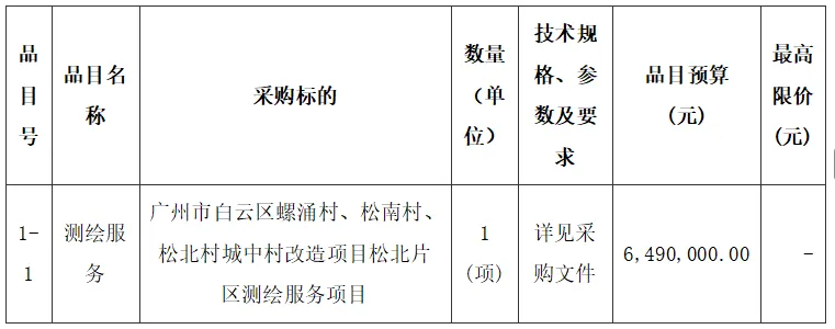 采购包1(广州市白云区螺涌村、松南村、松北村城中村改造项目松北片区测绘服务项目)特定资格要求如下: