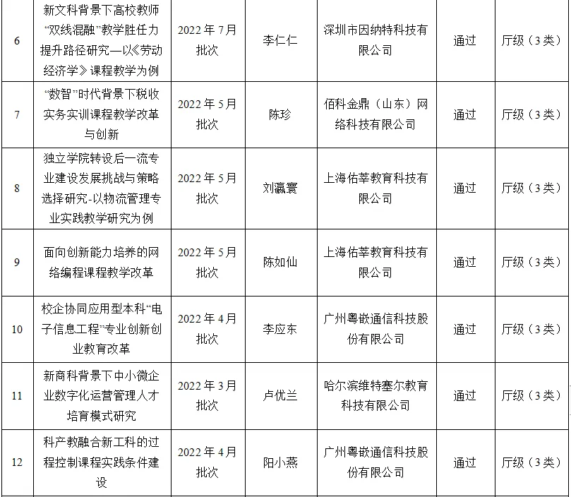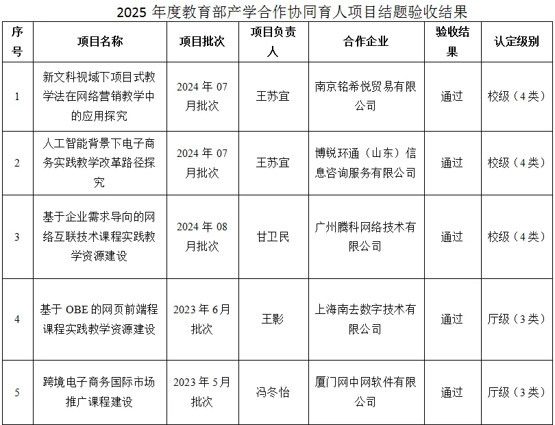 根据教育部高等教育司2024年6月发布的《教育部高等教育司关于调整产学合作协同育人项目运行模式及征集2024年产学合作协同育人项目的通知》文件要求,在“项目认定”方面,2024年6月以前的项目验收通过后按“教育部产学合作协同育人项目”认定(即3类项目);2024年6月之后立项并申请结题的产学协同育人项目,由学校组织开展结题验收工作,验收通过后按“校级产学合作协同育人项目”认定(即4类项目)。学校按不超过20%的项目遴选推荐为“省级产学合作协同育人项目”;认定为“省级产学合作协同育人项目”的项目中,遴选不超过50%的优秀项目推荐至教育部,教育部将根据省级教育行政部门推荐的优秀项目,组织开展项目认定并公布“教育部优秀产学合作协同育人项目”。