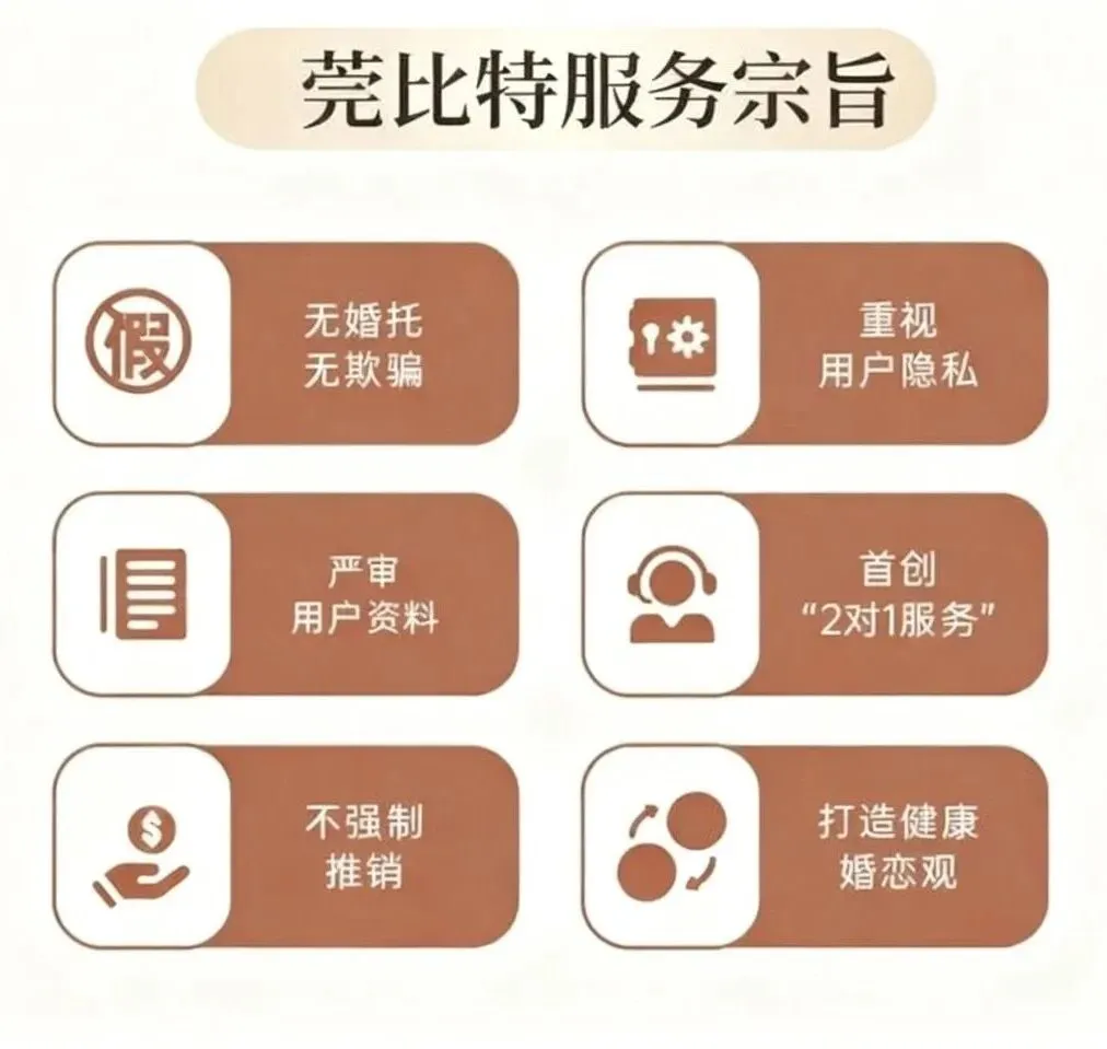 东莞莞比特高端婚恋(简称莞比特)坐落于东莞市茶山,是集品牌授权,婚恋对象介绍,婚恋情感指导服务为一体的公司,主打最真实靠谱的经营理念,结合当代年轻人最喜爱的五大体验感:松弛感,安全感,氛围感,尊重感,社交感的相亲服务。