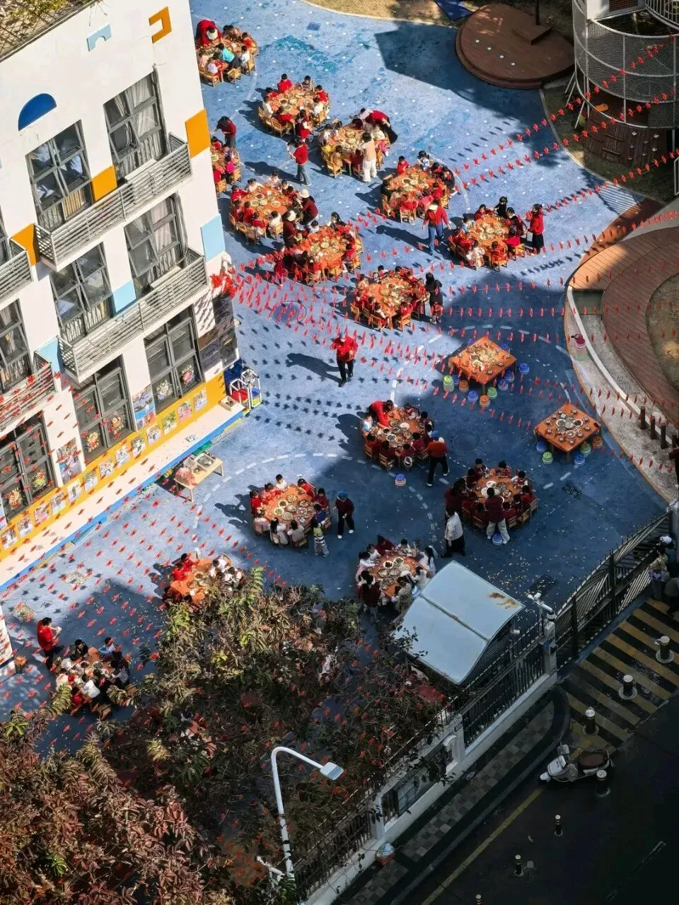 连婚宴都藏满巧思!幼儿园把平时的月末自助餐改成了喜庆围餐,日常菜谱还被赋予了满满的广式好意头:
