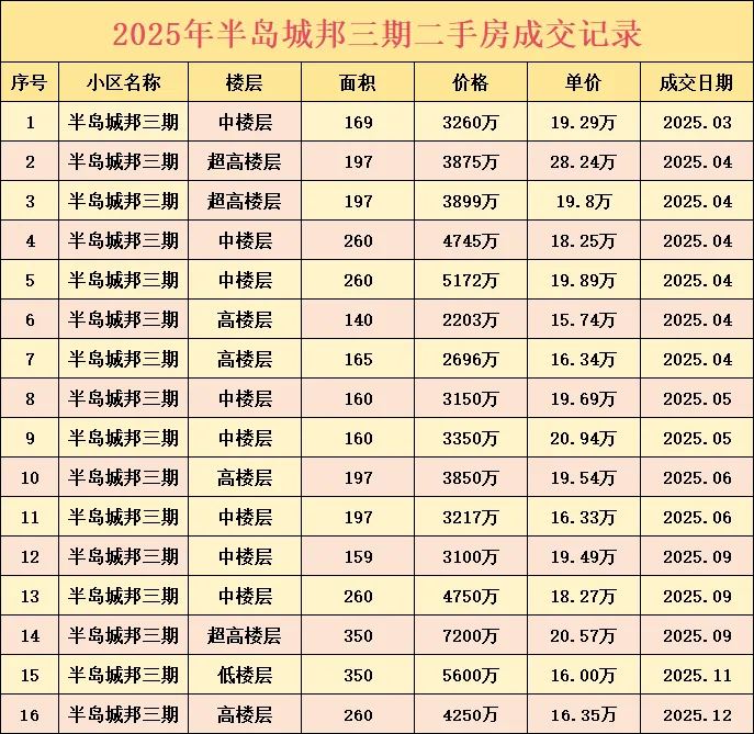 半岛三期大面积成交如下