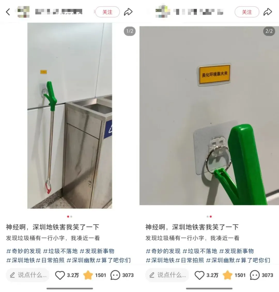 深圳地铁站内“美化环境靠大夹”的标语图片
