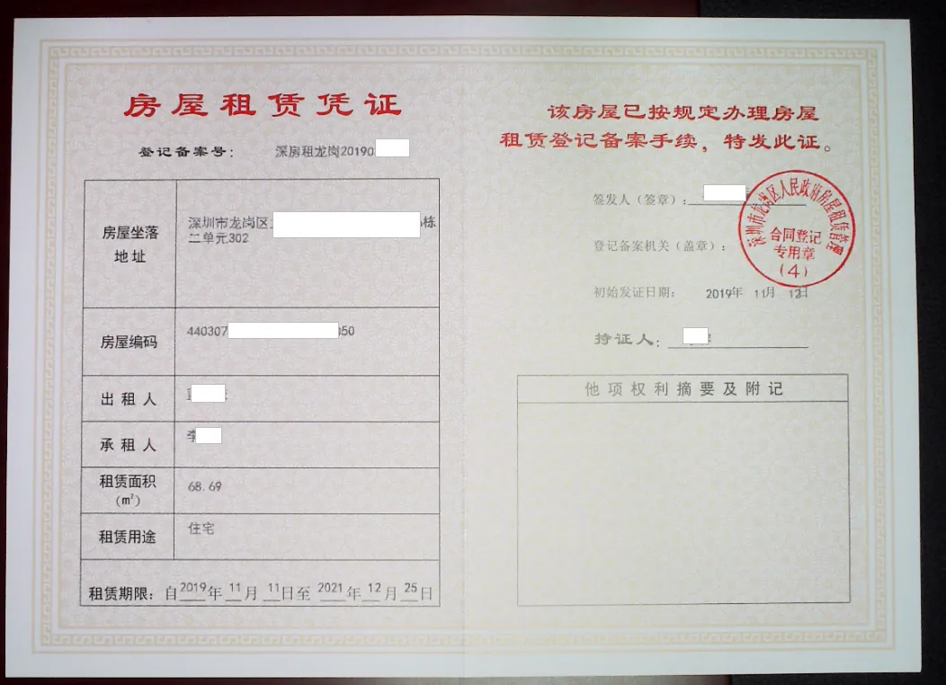 深圳市房屋租赁登记备案申请表