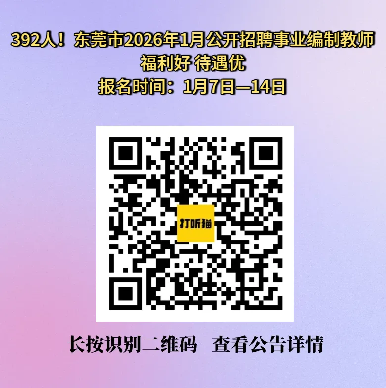 >【东莞招聘】392人!东莞市2026年1月公开招聘事业编制教师!