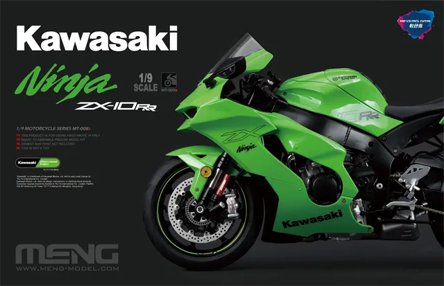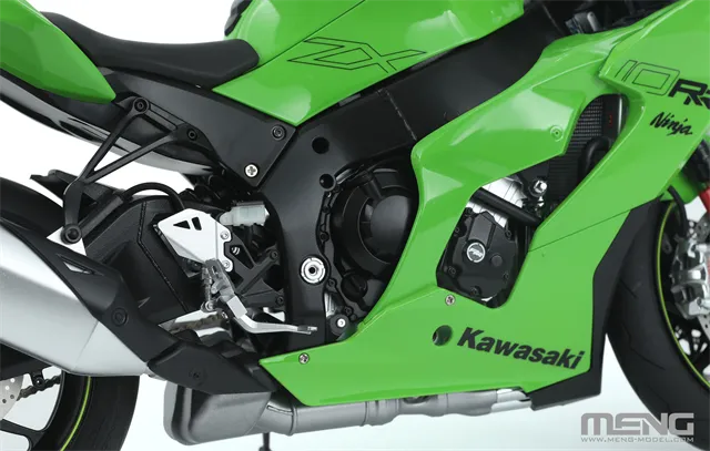 如今,MENG与川崎合作推出MT-008s 1/9比例川崎Ninja ZX-10RR(悦色版)模型,以精细工艺还原这台冠军赛车的风采。悦色版采用高精度预上色技术,生动再现ZX-10RR的金属质感与空气动力学造型。车体包围、发动机、锻造轮毂及专配软胶轮胎均细致呈现,后视镜采用镜面金属贴纸,仪表盘通过精美水贴还原,风挡与车灯则使用优质透明零件,共同铸就了一台细节饱满、质感出众的模型佳作。