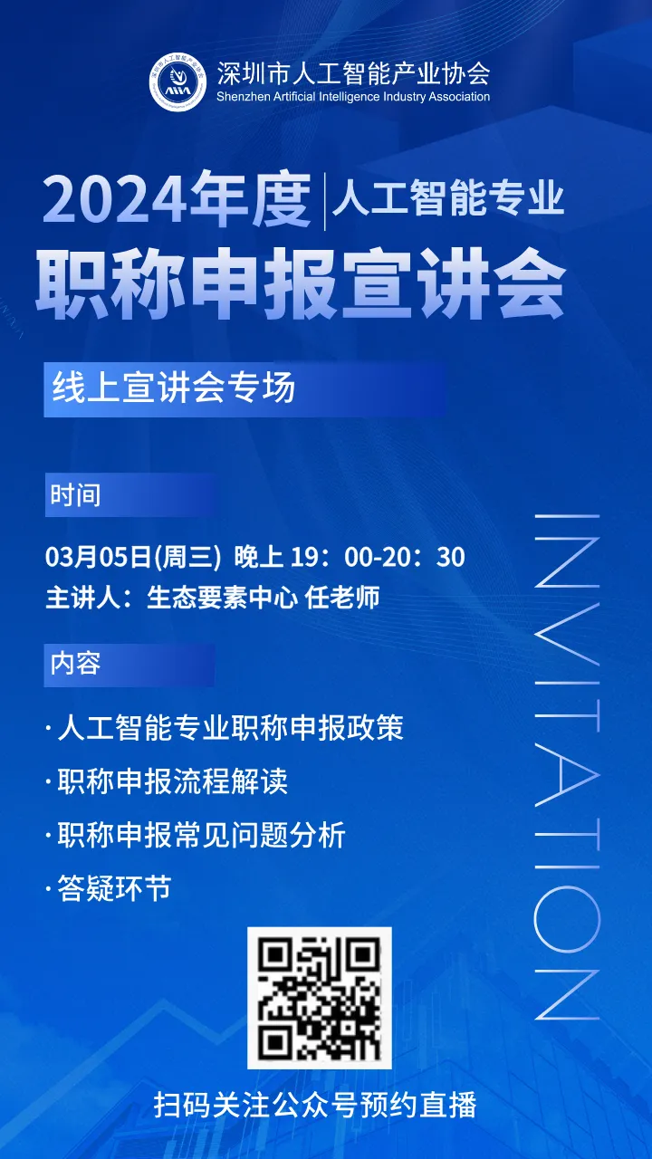 【重要通知】关于举办2024年度深圳市人工智能专业职称申报线上宣讲会的通知
