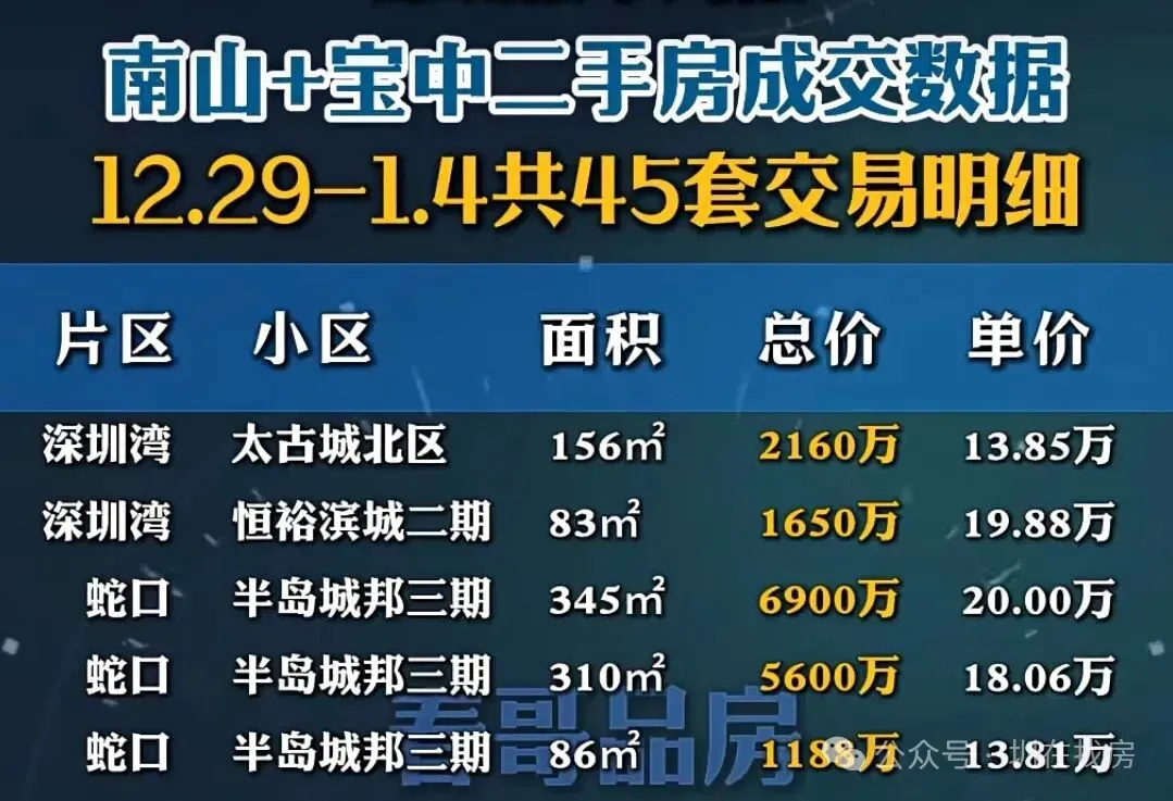 深圳湾二手成交火了