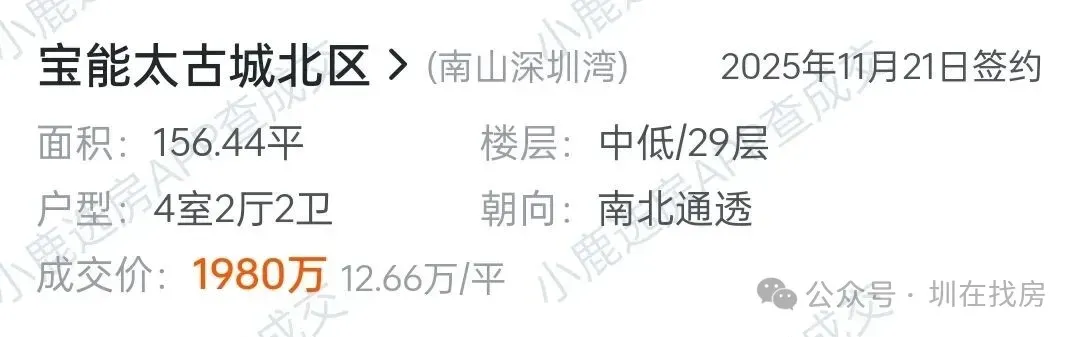值得一提的是,156平成交价,相比11月中旬1980万的成交价,涨了180万。