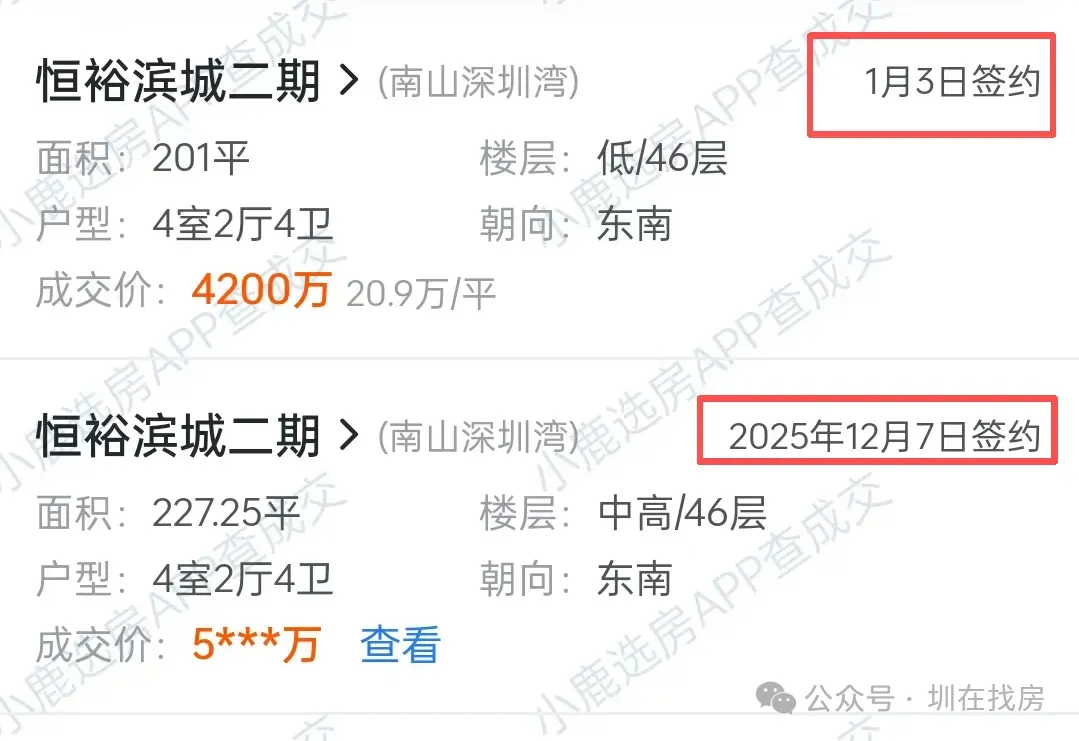 而1月3日,成交了一套201平4房,成交价4300万左右。