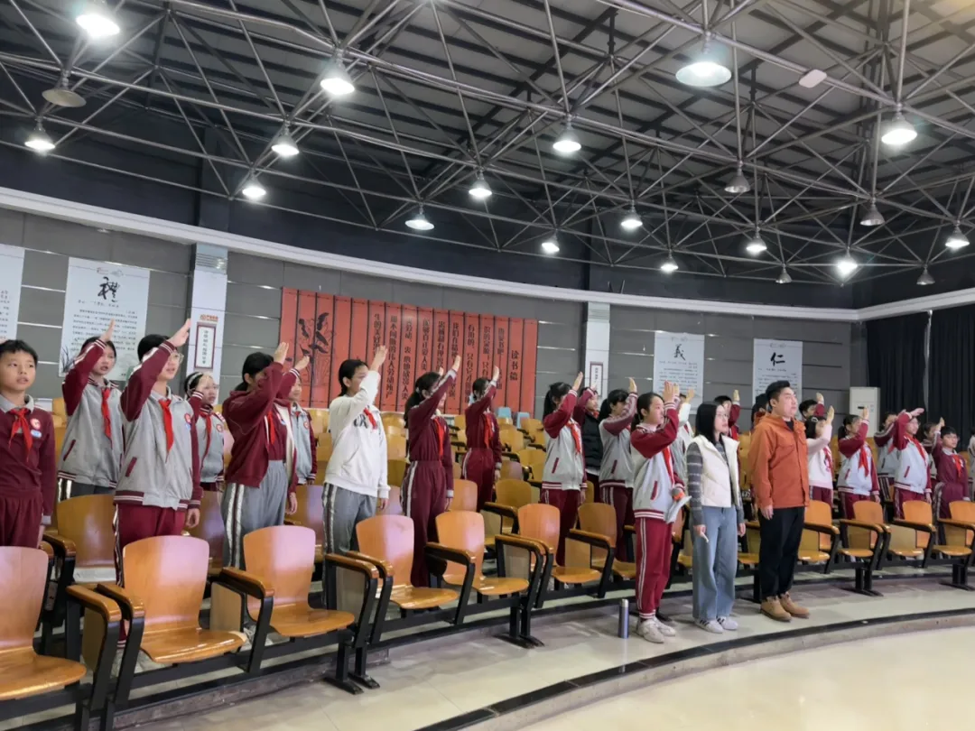 会议在庄严热烈的氛围中开始,全体少先队干部齐唱《中国少年先锋队队歌》,歌声响亮,表达了大家对少先队组织的热爱和尊敬。