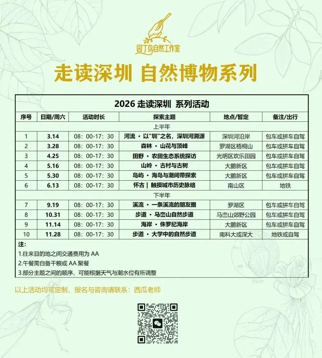 从24节气自然观察,到深圳十峰、自然启蒙、海岛探索、公园夜观……