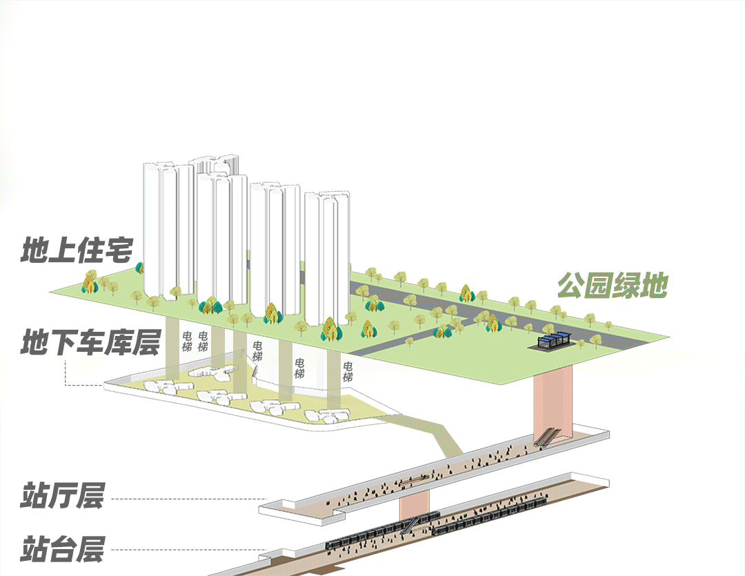 交通便捷:整体抬高了16米,真正实现地铁直通归家入户,业主从电梯厅直达地铁站厅,无需走出地面,归家动线无惧风雨。