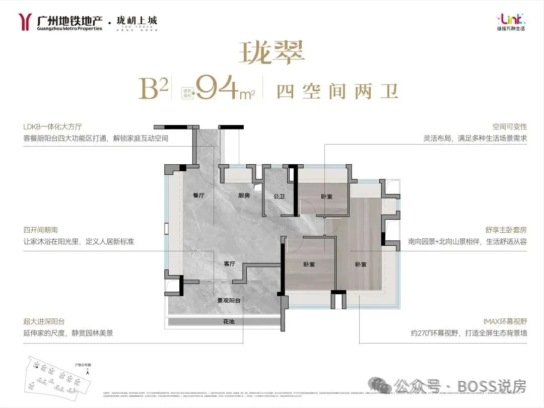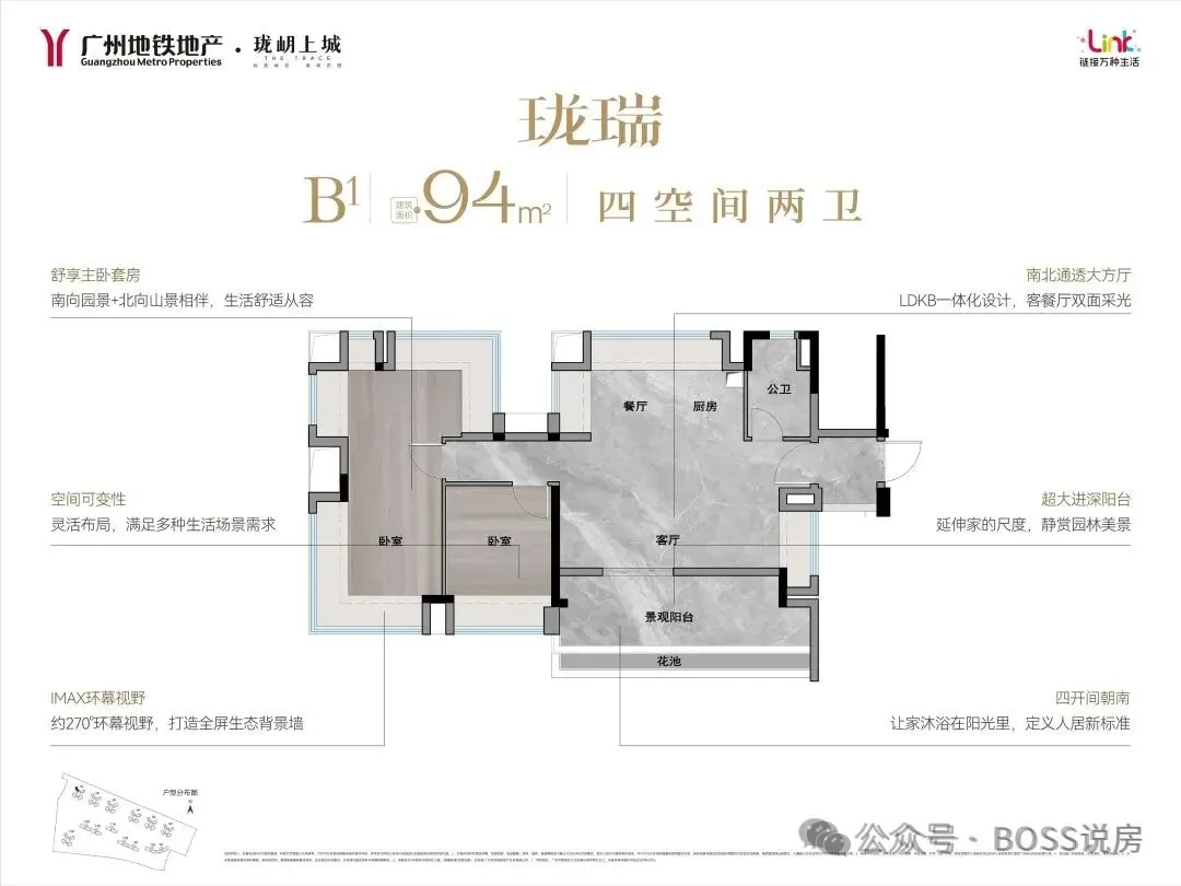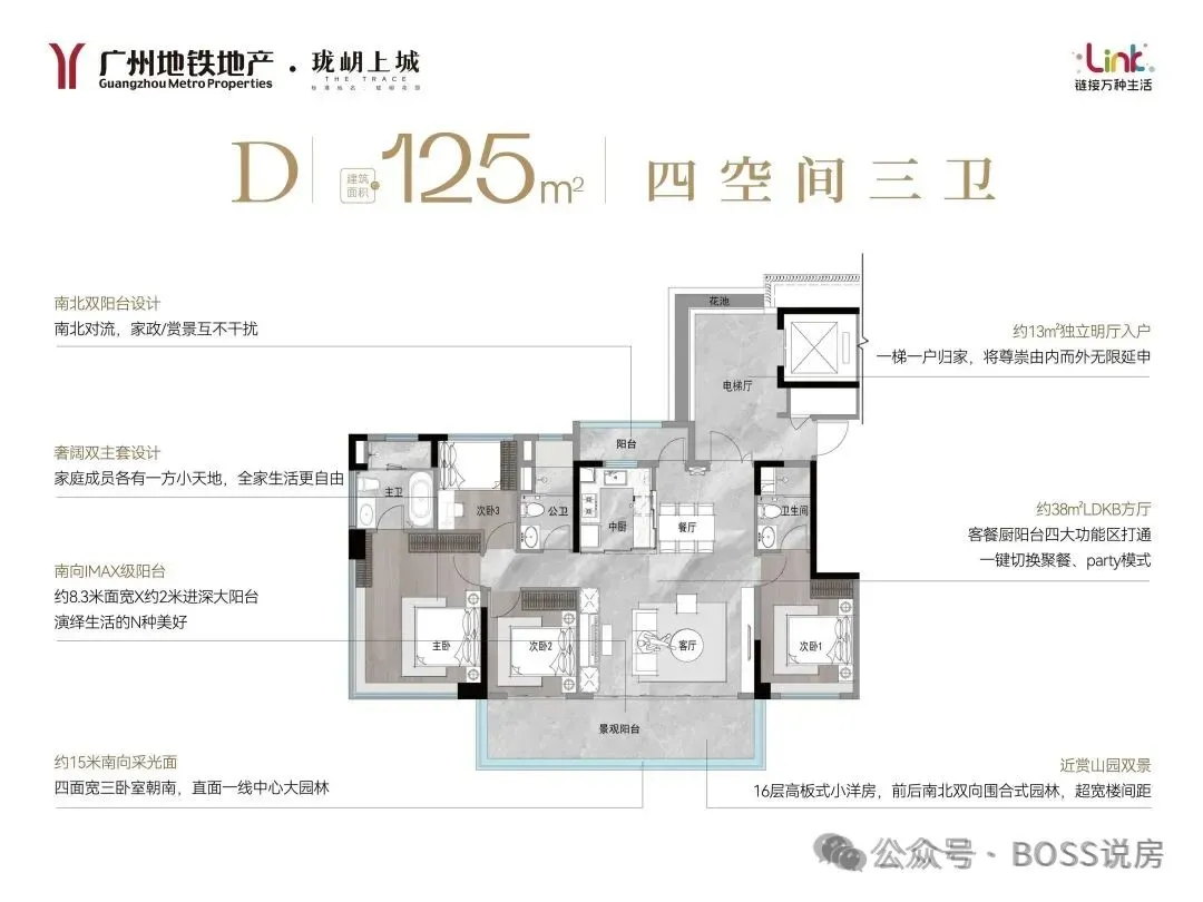 户型设计佳:如约 74㎡户型实现三房两厅两卫,94㎡四房预留了 270 度双边采光边厅,约 125 平户型能做到 4 房 3 卫双主套的超配功能