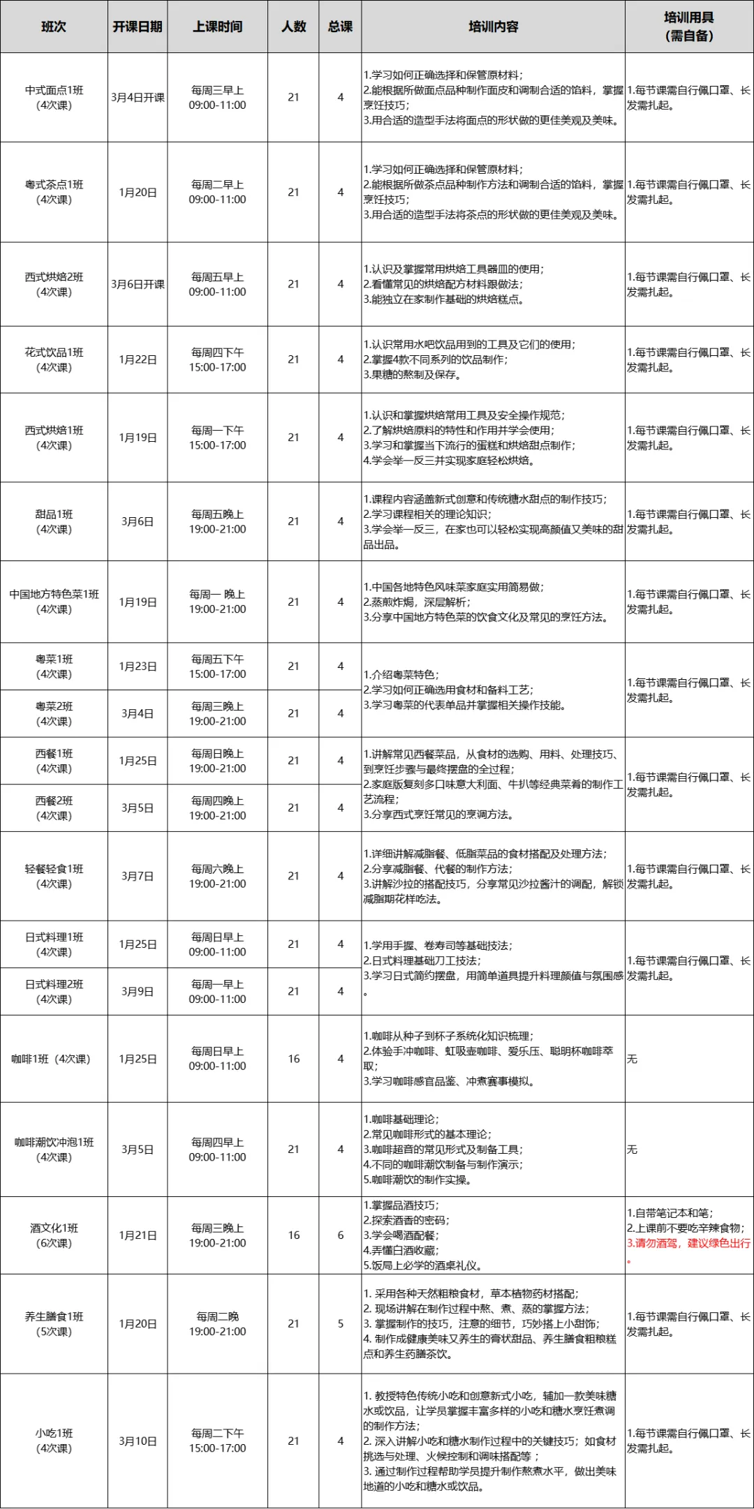 1.每人每期仅可报一个项目中的一个班,重复填写报名无效;