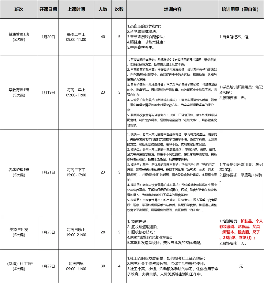 2.公益培训课的培训对象为18-63周岁成人,年龄不符请勿报名;