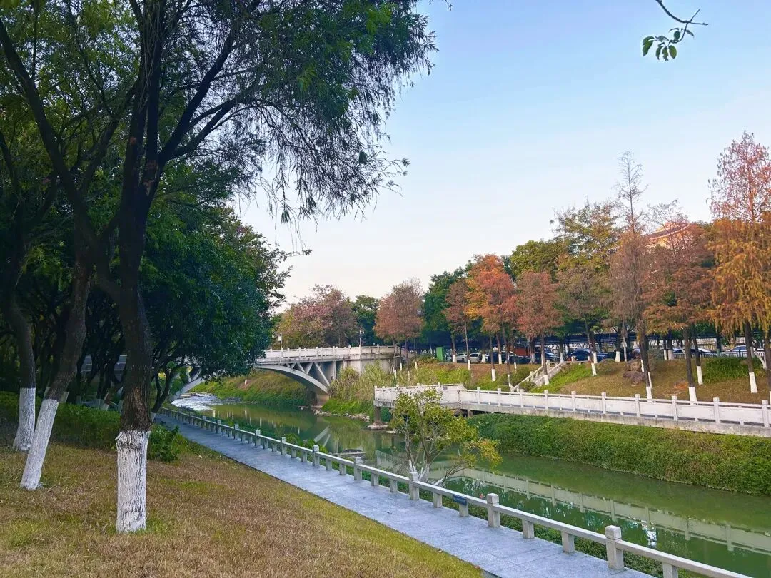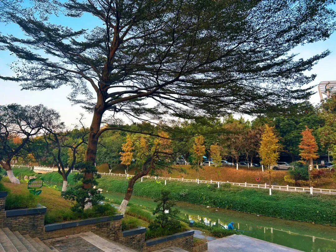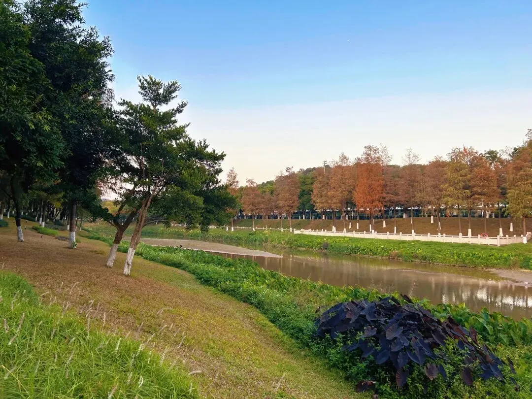 冬季来临,广州南岗河畔的草地绿意盎然,层林高耸的落羽杉被晕染成火红的焦糖色,走在黄埔文教园区的观光栈道上,你会不禁羡慕起在周围读书学习的孩子们。这一片湿地公园贯连着周边多所中小学和区少年宫。可以想象,每当孩子们步出学校大门,看到眼前秀丽多姿的树林和如茵的草坪,呼吸着周围山林与河水净滤过的空气,心中该是多么地轻松和快乐。于是,每到周末和节假日,不少家长都喜欢带孩子来这片湿地公园骑行、散步,或是参观园区内的自然知识展厅,以及在儿童乐园里玩耍。