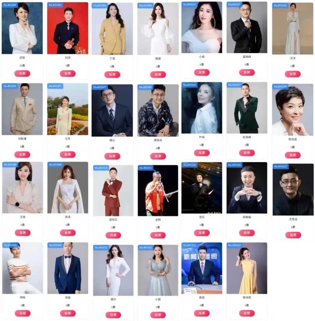 大伙可从爱岗敬业、服务受众、关注公益、弘扬正气等方面,对主持人的综合素质进行全方位衡量,并从27位候选人中,评选出自己喜爱的十位主持人。