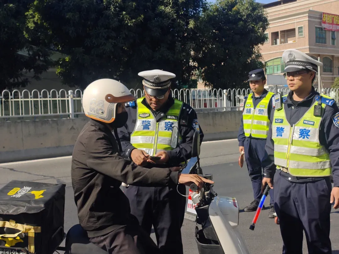 行动中,东莞交警企石大队针对外卖配送行业开展了“上门精准宣教”活动,宣传人员主动走访“美团”、“闪购”等外卖平台站点,采取“发放一资料、观看一警示视频、开展一案例课堂”的“三个一”形式,重点剖析外卖骑手常见的闯红灯、逆向行驶、不佩戴安全头盔等违法行为的危害。