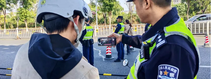 道滘交管大队在道厚路、振兴路、南阁中路等重点路段,同步开展电动自行车、摩托车统一整治行动。在早晚高峰车流密集时段,执法人员对首次违法驾驶人开展现场学习教育,组织观看警示案例片,并建议其在路口协助劝导其他交通违法者。