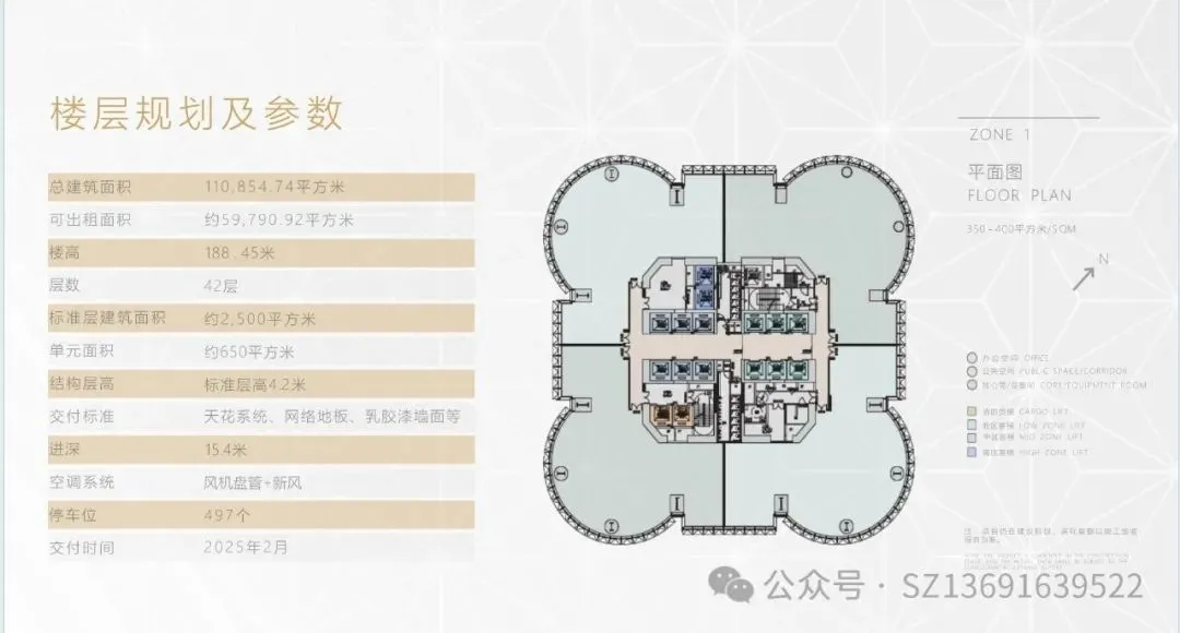 深圳雪花总部大厦,全新一手写字楼出租,特价77元/㎡起,