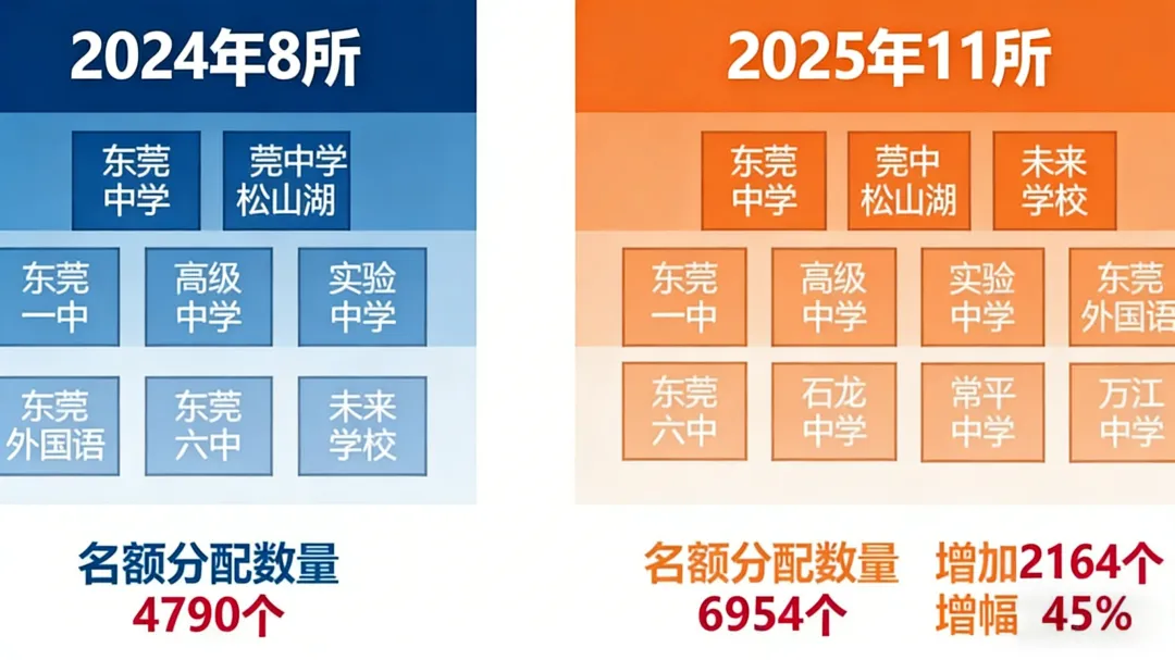 公办11大校里9所学校扩招全是户籍生,而随迁生学位不仅数量少,部分学校还出现了缩减(龙常万3校共减少了130个);只有松山湖未来增加了5个随迁生学位。