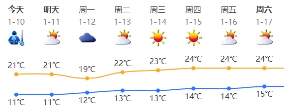 据深圳市气象台预计,1月10日—11日持续晴天干燥,气温缓慢回升,最高气温可达20℃,早晚依旧较冷。据最新消息,预计1月11日受弱冷空气南下影响,广东各地白天最高气温小幅下降,中东部海面风力会加大到6—7级。详情点>>>