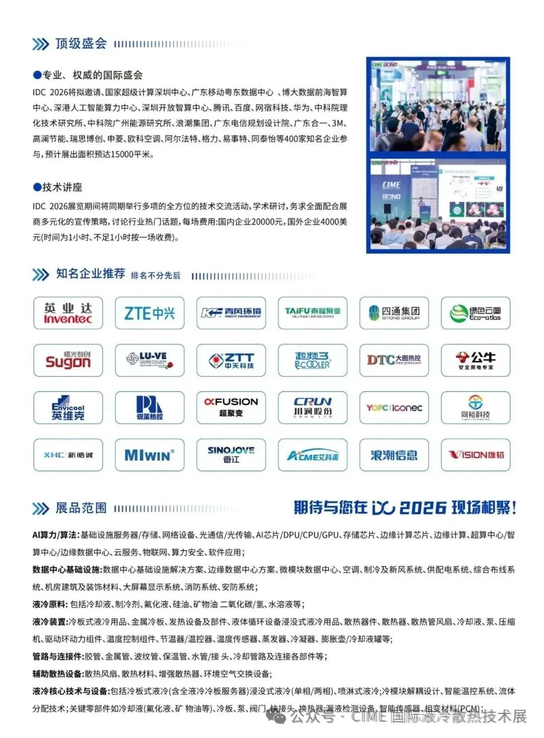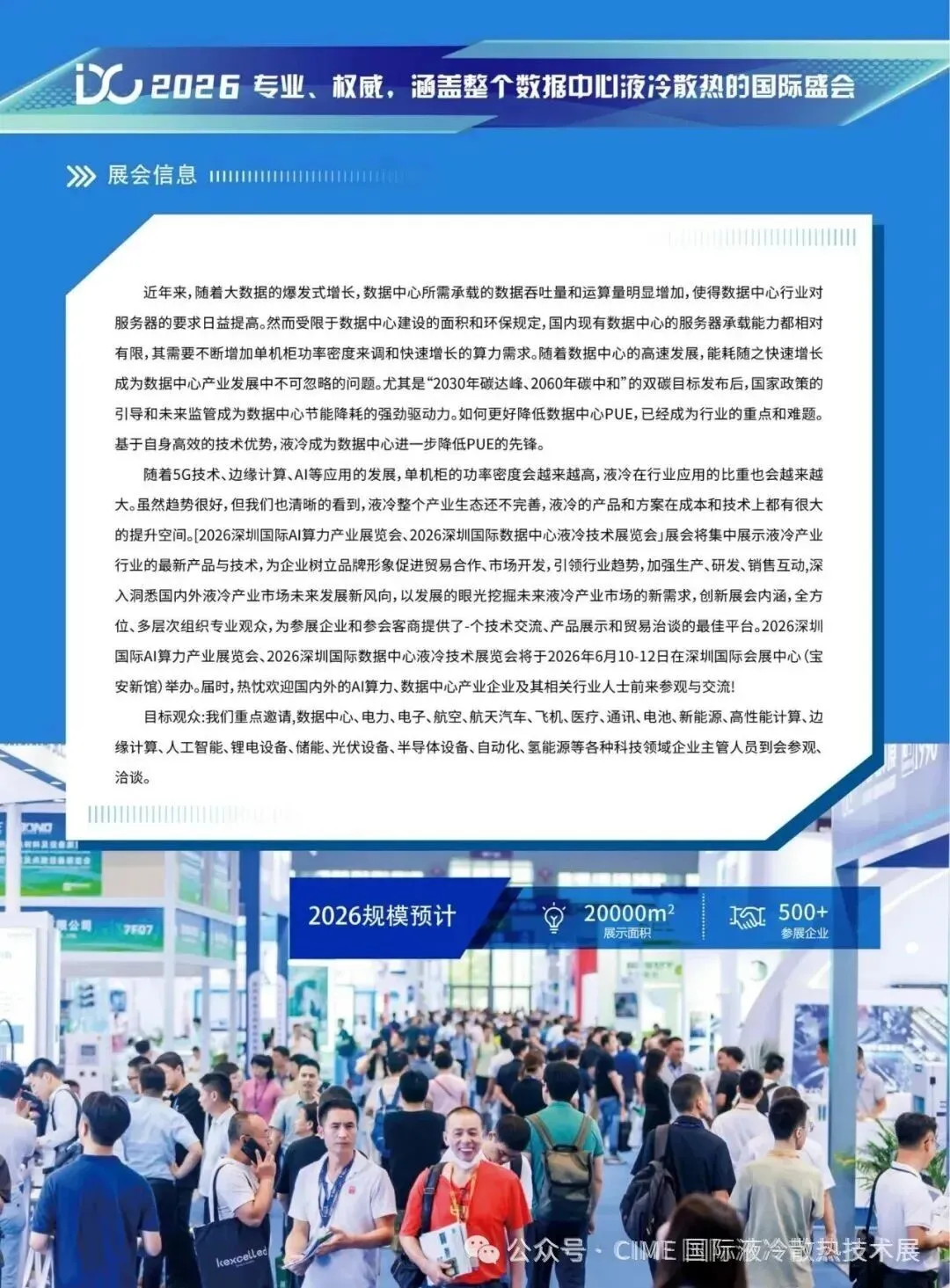 >IDC 2026 第六届深圳国际数据中心液冷技术展览会将于6月10-12日,国际会展中心召开诚邀参观参展!