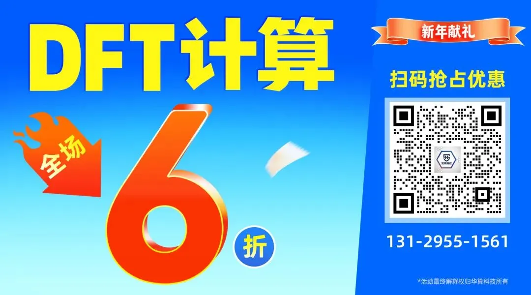 DFT计算全场6折!华算科技新年献礼,催化/电池/半导体领域全覆盖,限时开抢!