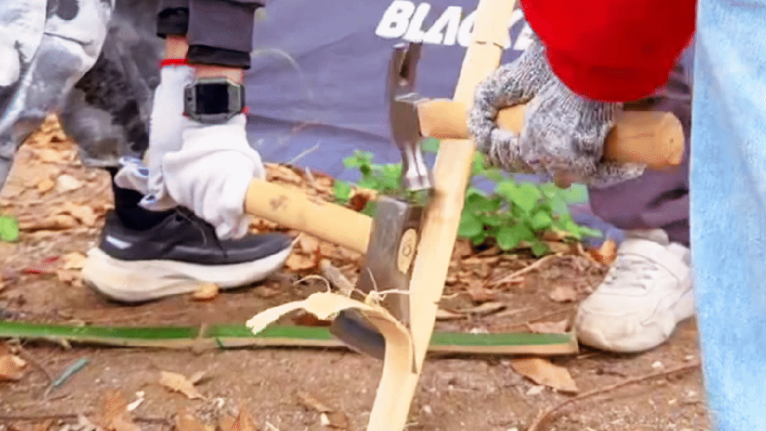 教练先讲解如何寻找冬笋的线索:地面的裂缝、竹子的颜色、土地的凸起......