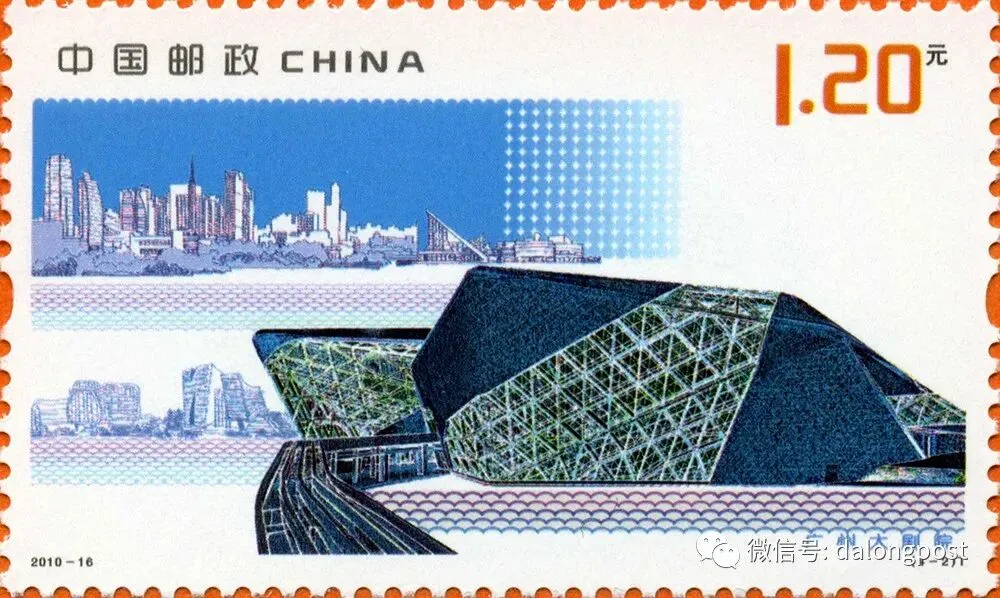 第一枚邮票是五羊衔谷。“五羊衔谷”有着一个美丽的民间传说:大约在周朝时,广州连年灾荒,田野荒芜,农业失收,民不聊生。一天,南海的天空忽然传来一阵悠扬的音乐,出现了五朵彩色祥云,上有五位仙人,身穿五色彩衣,分别骑着不同毛色的山羊,羊嘴都衔着饱满的优良稻穗,降临楚庭。仙人把稻穗给了广州人,并祝愿此处永无饥荒。祝罢仙人腾空飞逝,五只仙羊化为石头留在山坡,从此广州便成了岭南最富庶的地方,这就是广州“五羊城”、“穗城”、“羊城”名称的由来。落成于1960年04月的五羊石雕像,是根据五羊的历史传说创作的,石雕经过五十年的历史检验,被誉为广州的城徽,为历史文化名城增色不少。第二枚邮票是广州大剧院。广州大剧院是广州新中轴线上的标志性建筑之一,2010年05月09日,广州大剧院正式投入运营。其设计灵感就是来自于“圆润双砾”,表现出广州的文化艺术情结,广州的文化是一种开放的文化,邮票所呈现的中远景则是广州地标性的一些文化艺术主题建筑,如博物馆、少年宫、图书馆等。第三枚邮票是珠江歌韵。珠江是中国四大河流之一,其名来自“海珠石”。当珠江流经广州城下时,江中有一巨大的石岛,石岛长期被江水冲刷,变得圆滑光润,形如珍珠,称“海珠石”。由此,坐落该石的河流便称之为“珠江”。习惯上,人们把流经市区的那段河流称为"珠江"。两千多年前珠江河道曾经很宽,达2000米以上,故又称为"珠海",后河道逐渐变窄。珠江两岸星级宾馆、商厦林立:白天鹅宾馆、华厦大酒店、南方大厦、爱群大厦、广州宾馆、广信江湾大酒店直耸云天;夜晚,两岸灯火璀璨,明月高悬,"珠江夜游"游轮载着满船游客自西向东,轻泛珠江水,共奏欢乐曲。邮票画面呈现了广州新电视塔、猎德大桥、西塔、珠江新城等璀璨的夜景,展现广州精彩而动人的生活方式。第四枚邮票是广州国际会议展览中心。广州国际会议展览中心是目前亚洲最大、世界第二大的会展中心,于2004年04月15日琶洲岛启用,是二十一世纪广州城市新形象的标志性建筑和旅游观光景点之一。邮票画面以古老的亚洲热带风格的骑楼建筑作为引子,把广州的CBD中心及主体建筑会展中心做了一个时空交换展现出来。邮票的设计理念以“一江两岸”概括广州的城市形态,并用不同的颜色体现波光粼粼的水色,它的折射反光与每枚邮票的色调匹配变幻,产生了动感珠江之美。