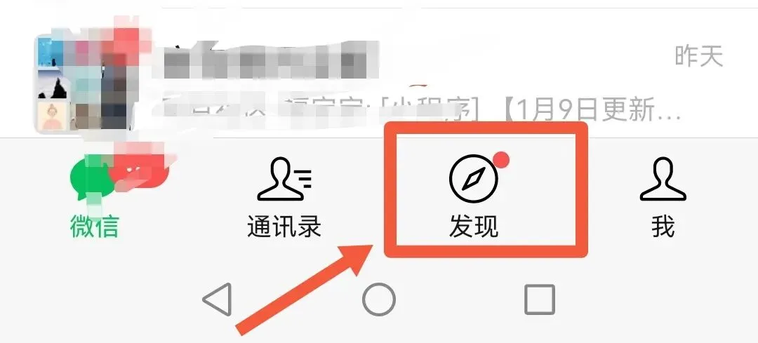 第一步:进入微信页面——点击最下面右手边“发现”,如下图图所示: