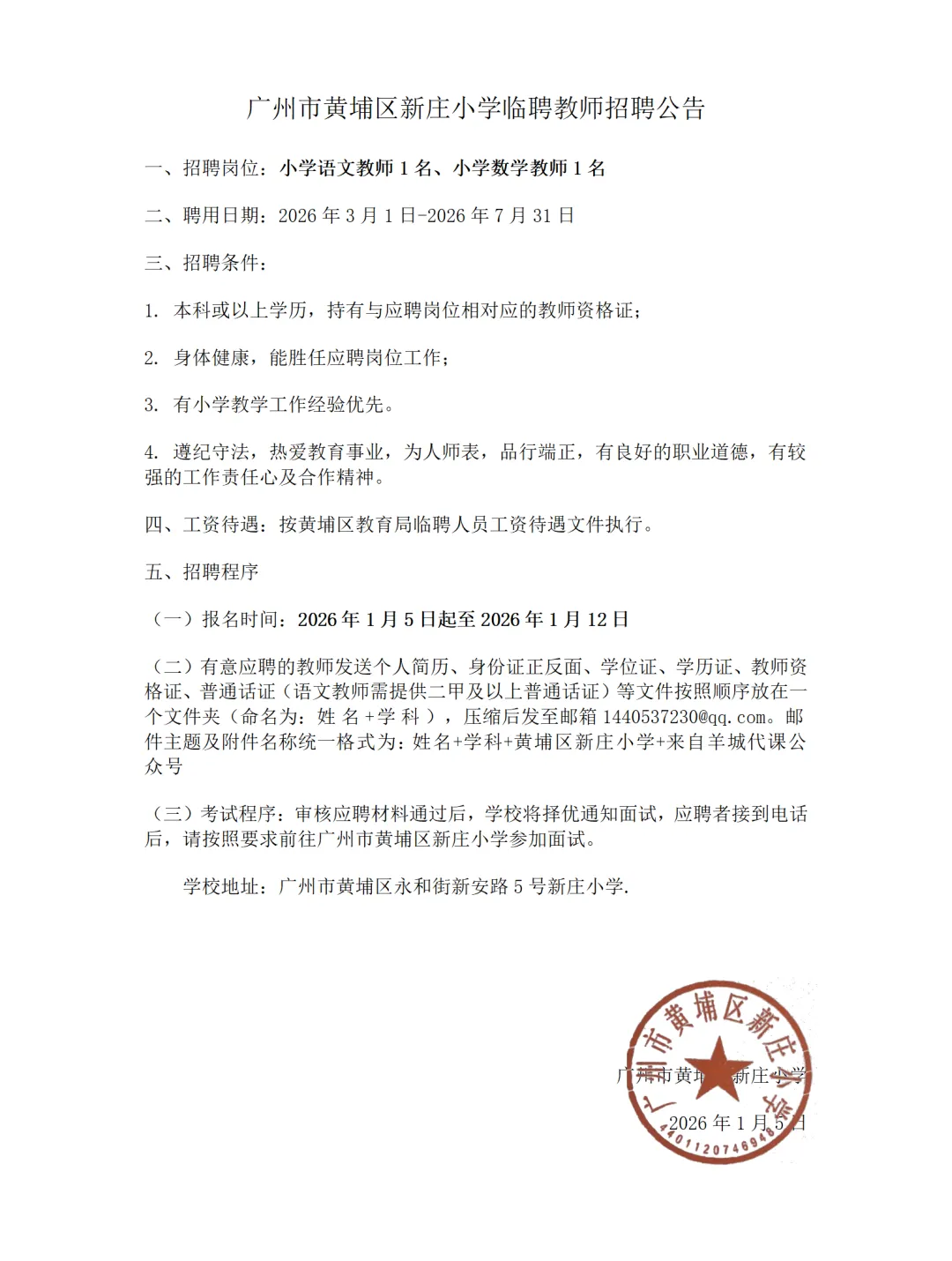 要求:相关专业本科或以上学历、有高级中学教师资格证、且已加入番禺区临聘库。应聘老师请把个人简历发至邮箱:121107768@qq.com。