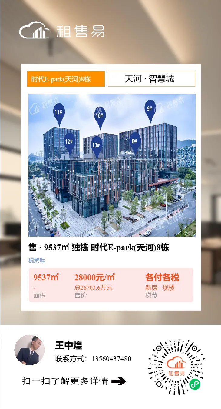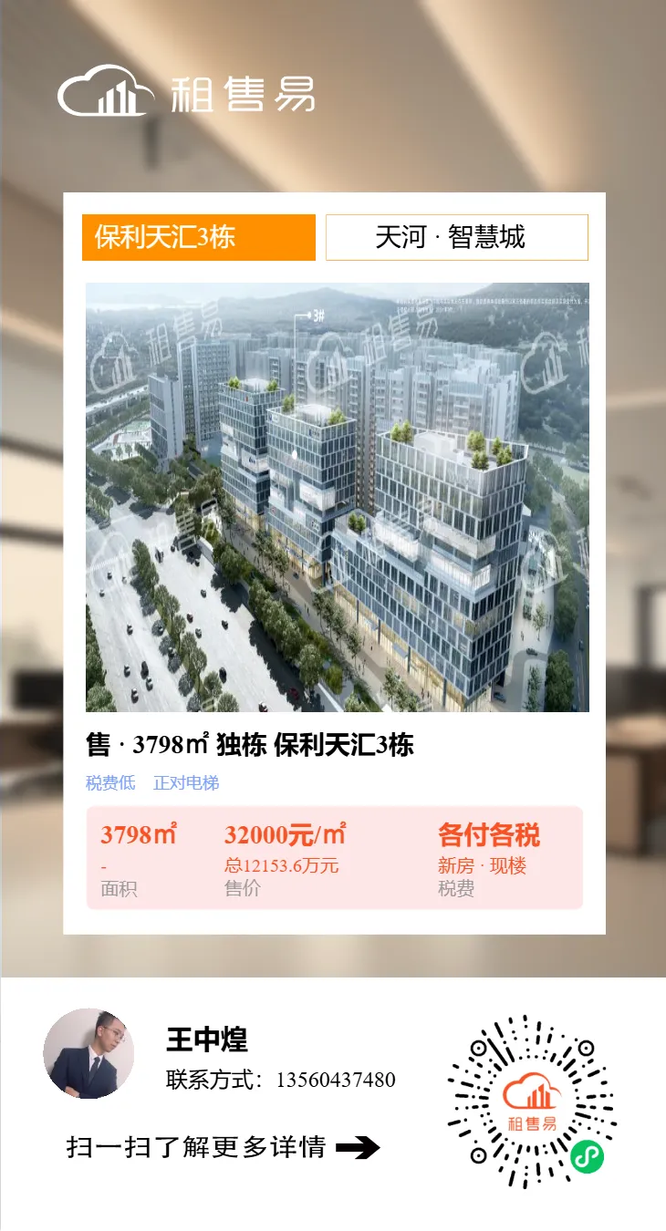 广州市天河区、海珠区、越秀区、荔湾区、黄埔区、白云区、番禺区写字楼租售均有成交,更多写字楼/创意园信息欢迎扫码咨询。