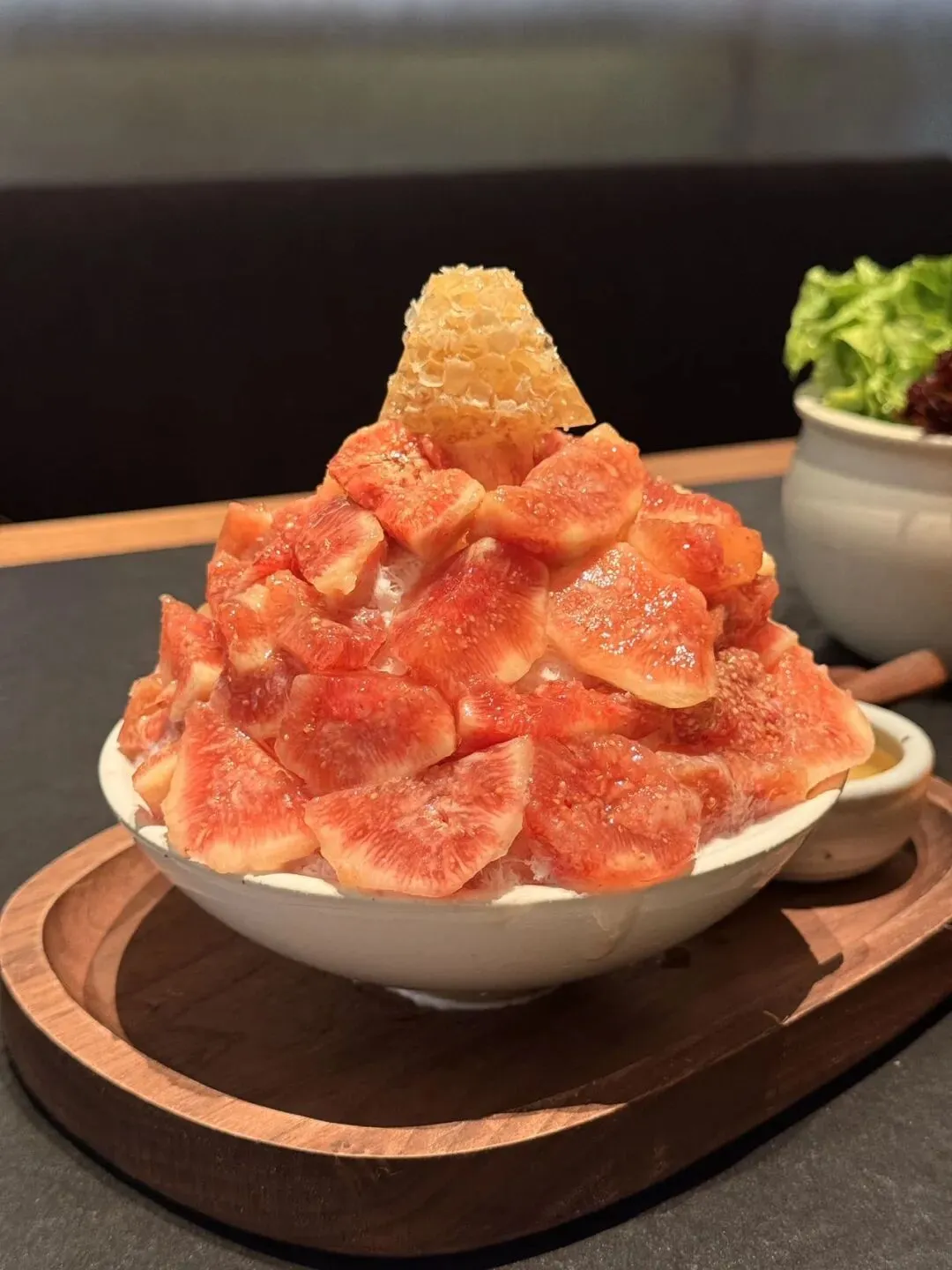 这两个搭配在一起没有违和感,起初会觉得甜腻。吃了发现奶冰不是甜甜的劣质奶,而是高级奶的味道。无花果是吃出来的新鲜!淋上蜂蜜味道会更好吃,会稍微甜一点点点,但是淡淡的清甜果味搭配蜂蜜口感很清新,味道提升了一个档次。(tips:蜂巢无敌甜)