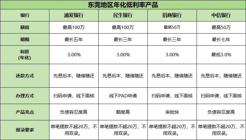 以上4款,是目前东莞地区各银行最低利率的产品,基本都是3.0%。